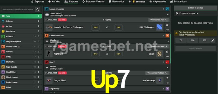 O Up7 oferece uma grande seleção de opções de apostas em e-sports com probabilidades competitivas